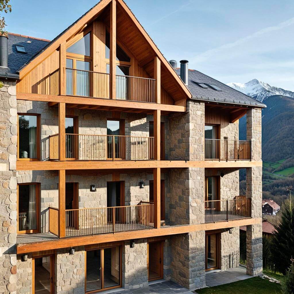 The developer proposes the development of a residential promotion of 86 homes distributed in 9 blocks. The project is distributed over 4 floors above ground and 1 floor below ground. With a total buildability of 8,168 m², the project contemplates the development of 2 and 3 bedroom homes with garage and storage rooms, private terraces on floors 1 and 2 and a private garden on the ground floor. The sale price €/m² has been contrasted with a market study carried out by a reputable independent advisor and the estimated sale price set by the developer is consistent with the conclusions of the study. The asset is very well located in the La Pleta de Benasque sector, in the Aragonese Pyrenees.