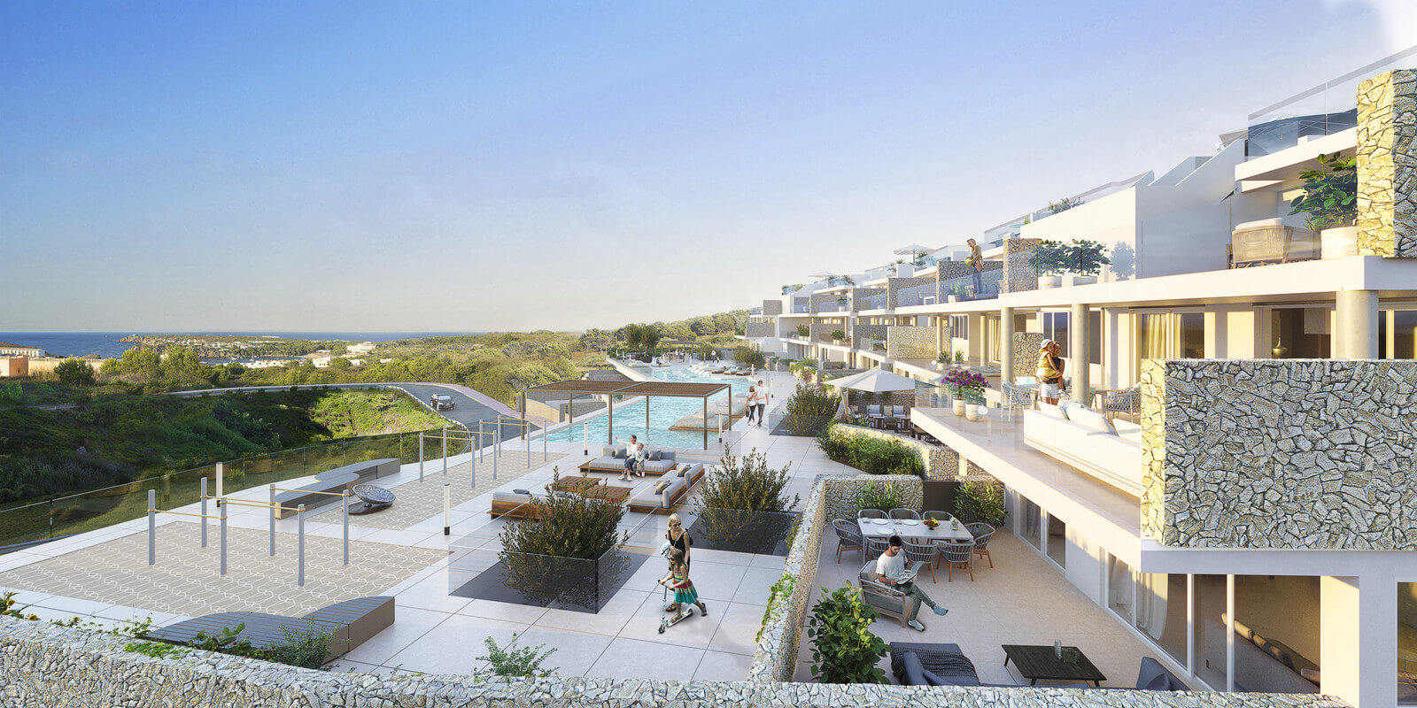 La promoción está situada en el municipio Es Mercadall, al noreste de la isla Menorca a 3 minutos caminando de la playa Arenal de Castell. Se trata de una zona consolidada que cuenta con hoteles, ocio, y todo tipo de equipamientos, etc. El proyecto se encuentra a 20 minutos del centro de Mahón y 25 km del aeropuerto. Menorca es la segunda en extensión de las Islas Baleares y la séptima del país. Tiene una población alrededor de los 100.000 habitantes, llegándose a duplicar en verano con motivo del turismo.