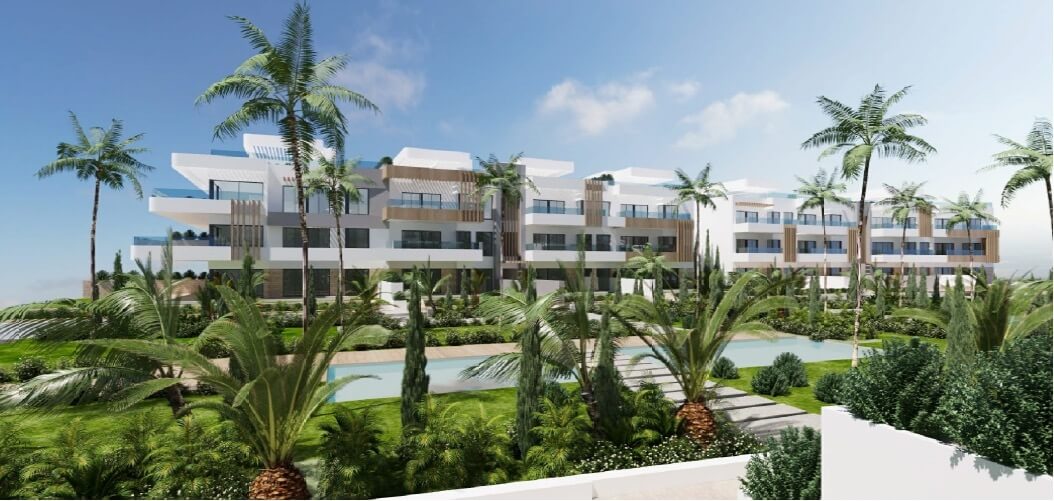 (i) La promoción de Almayate consiste en el desarrollo de 125 viviendas en bloque de 1, 2, 3 y 4 dormitorios, 136 plazas de aparcamiento y 122 trasteros. El complejo se distribuye en seis bloques de tres alturas (planta baja+2+ático) y cuenta con zonas comunes ajardinadas y piscina comunitaria.