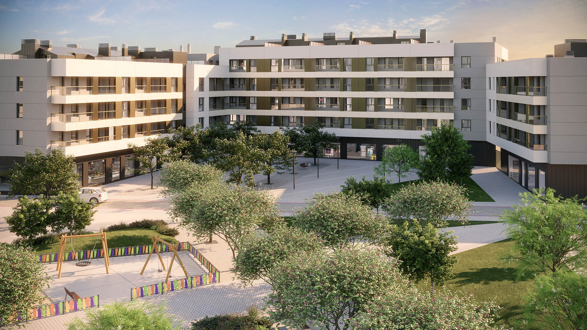 Una volta acquisito il terreno, il progetto prevede il completamento dei lavori di urbanizzazione e la richiesta di licenza per lo sviluppo di una promozione di 69 unità in regime di cooperativa. Le abitazioni avranno tra 2 e 5 camere da letto, garage e ripostiglio con aree comuni che includono palestra, piscina sia esterna che interna, e area giochi per bambini, oltre a ampi giardini e terrazze private. Le abitazioni sono di alta qualità e includono aerotermia, riscaldamento a pavimento e ogni tipo di domotica.