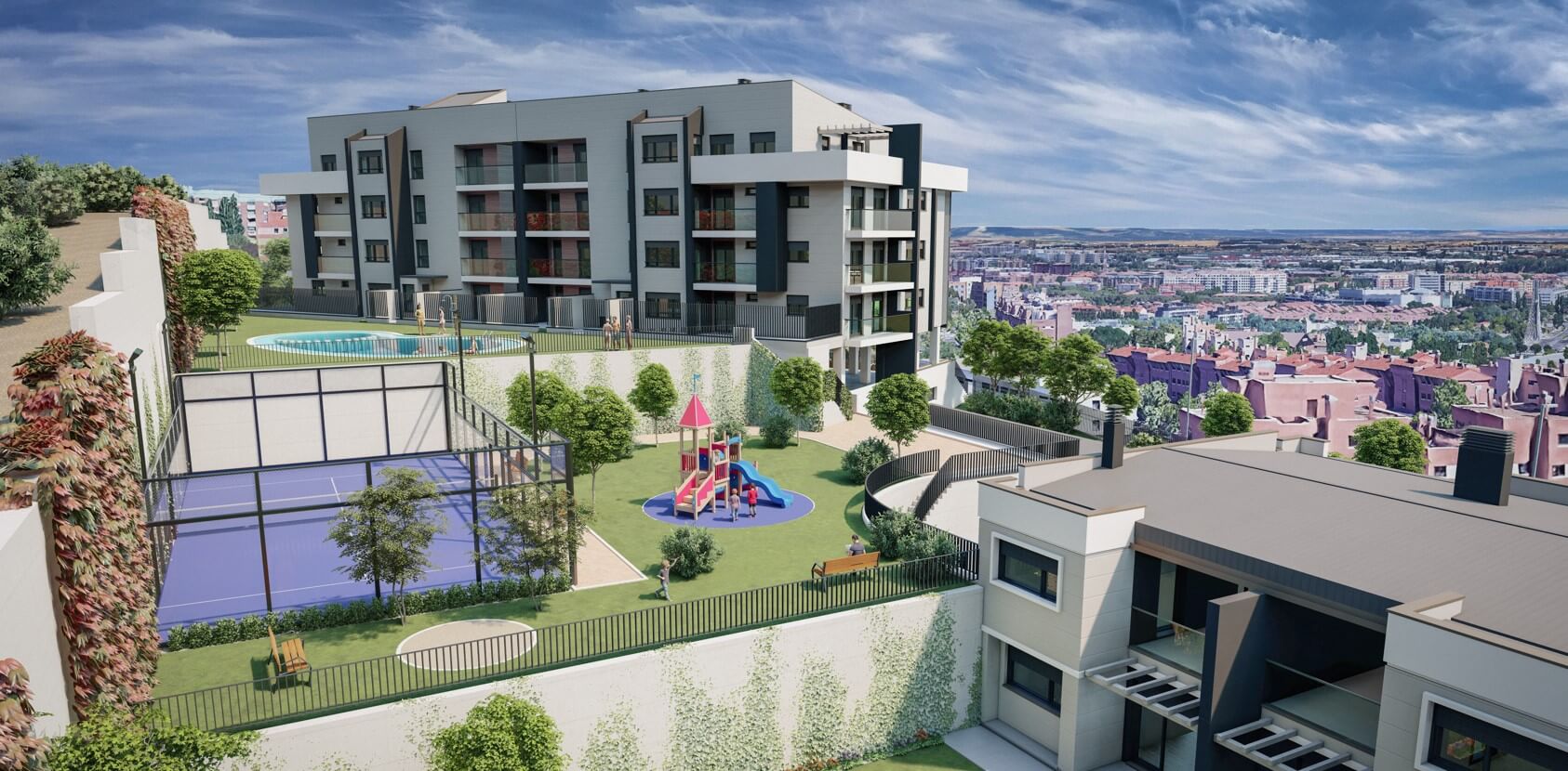 We present a new project Laderas de Parquesol, which consists of the development of a new residential promotion that encompasses 28 homes of which 6 units are single-family with 4 bedrooms and 22 are multi-family units with 2 and 3 bedrooms. All homes include garage and storage room, as well as common areas such as swimming pool, paddle tennis court, playground, garden areas and will have energy rating A. The project is located in Valladolid. The single-family homes have an average area of 168 m² and an average price of €445,000; the multi-family homes 143 m² at an average sale price of around €285,000.