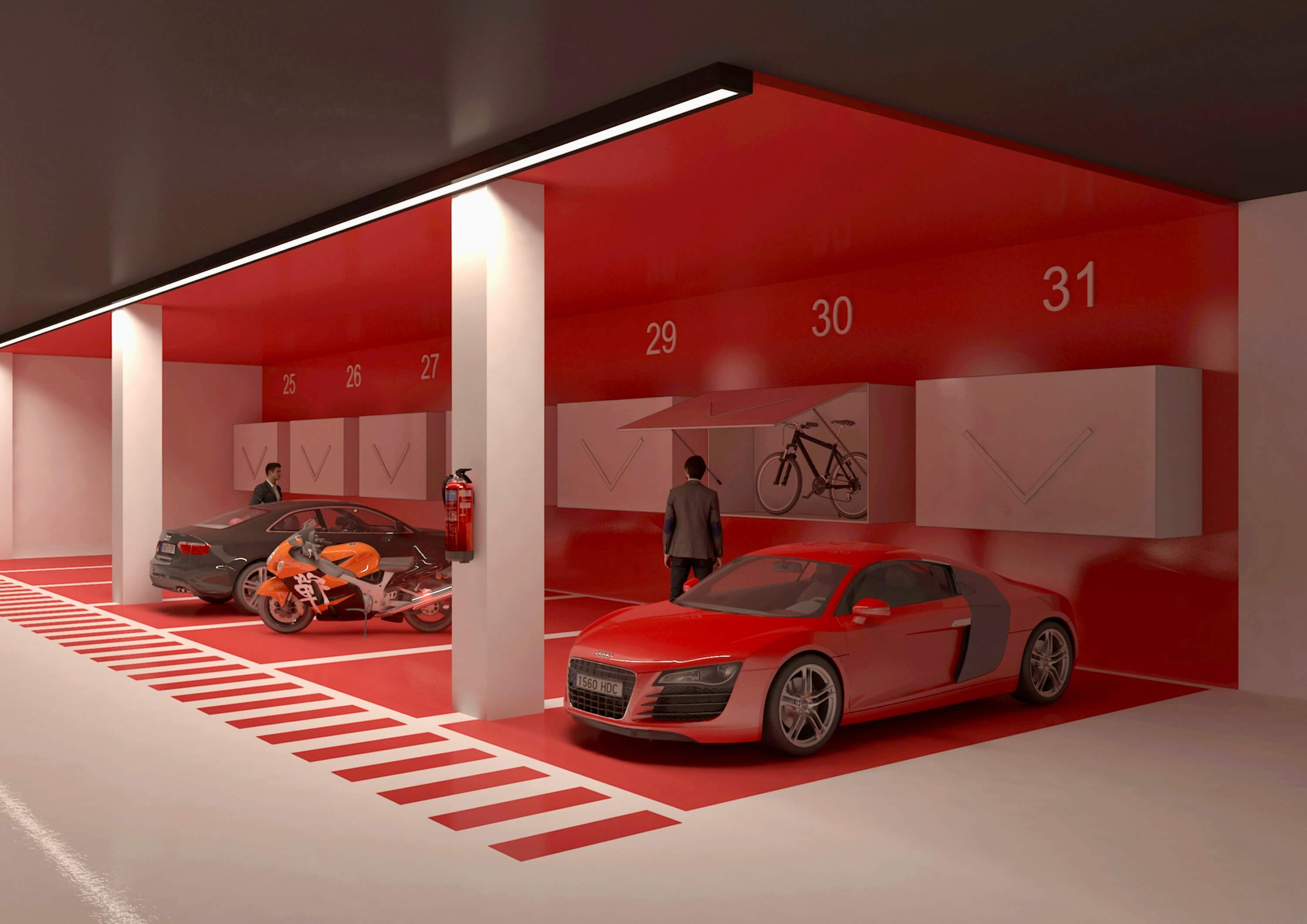 Os presentamos un nuevo proyecto que consiste en el desarrollo de una promoción de un garaje comunitario que recoge un total de 218 plazas de aparcamiento, divididas en 4 plantas en Avenida del Mediterráneo, Madrid. Todas las plazas cuentan con preinstalación de puntos de carga para vehículos eléctricos. Además, se va a añadir un pequeño arcón en altura, que servirá de espacio para almacenamiento. Las plazas cuentan con una superficie media de 12 m2 y tienen un precio medio de venta en torno a 27.900€.
