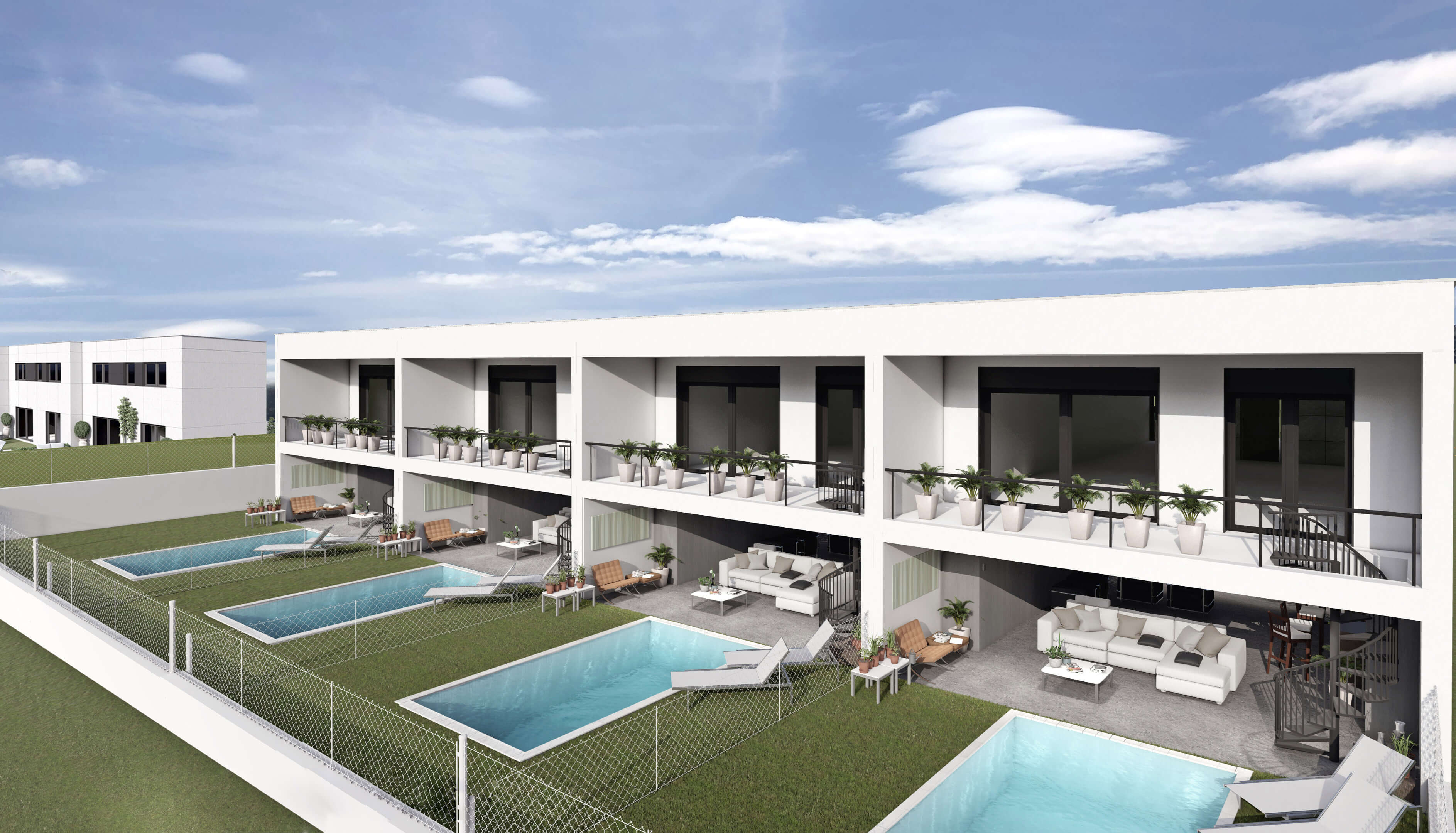 We present a new project that consists of granting a loan for the construction of a development of 7 terraced single-family homes in Cunit, Tarragona. These are homes distributed over two floors, with 2 to 3 bedrooms, and average surfaces of 110 m2. The average price of the homes is around 260,000€.